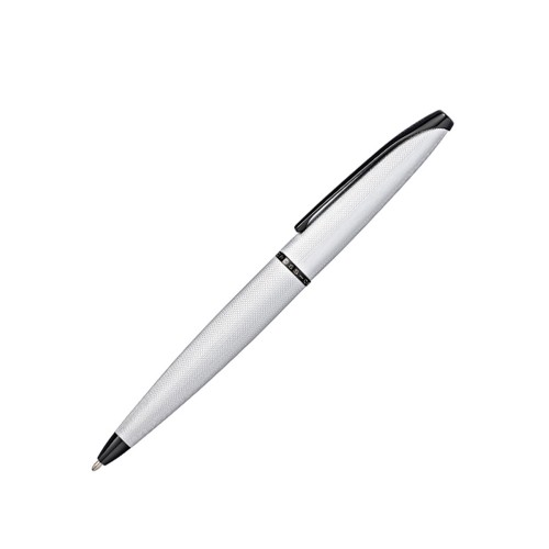 Шариковая ручка Cross ATX Brushed Chrome с гравировкой, полированным покрытием черного цвета и поворотным механизмом.