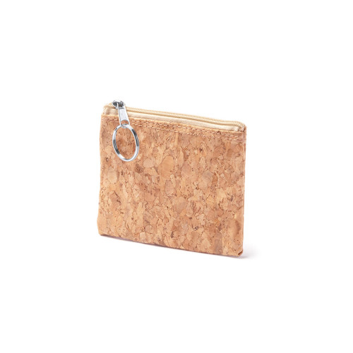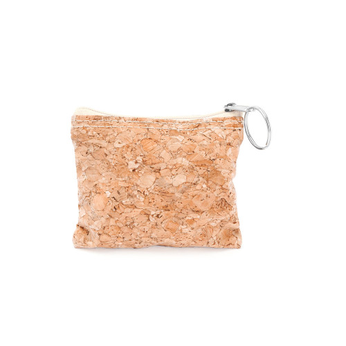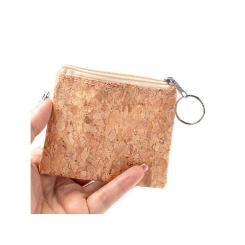 Кошелек из натуральной пробки с серебристым кольцом на застежке-молнии.