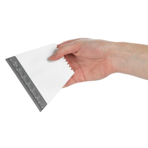 Все 4 стороны скребка рабочие: резиновый водосгон с широкой стороны, зубья-ледорубы с узкой и две скошенные грани по бокам.