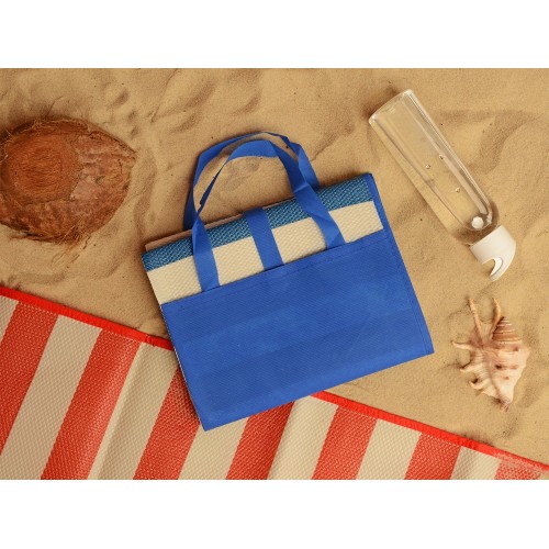 Прочная и яркая циновка обеспечит комфортный отдых на пляже. Циновку можно компактно сложить в форме сумки и переносить на плече, благодаря надежным лямкам.