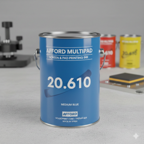 Серия Afford Multipad 20.610 (Испания) в оттенке «Средний синий» — это эталон универсальности в мире тампопечати. Краска разработана для работы в условиях высоконагруженных производств, обеспечивая идеальную цветопередачу и стабильность оттиска от первого до последнего изделия в тираже.