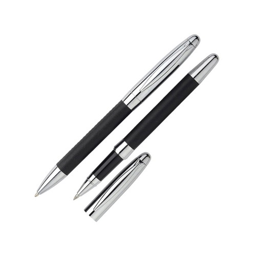 Стильный набор, состоящий из шариковой ручки, ручки-роллер и футляра с шильдом, обладает ярким дизайном и сочетанием фактур. Отличный подарок для женщин и мужчин. Ручки и футляр выполнены в единой цветовой гамме.